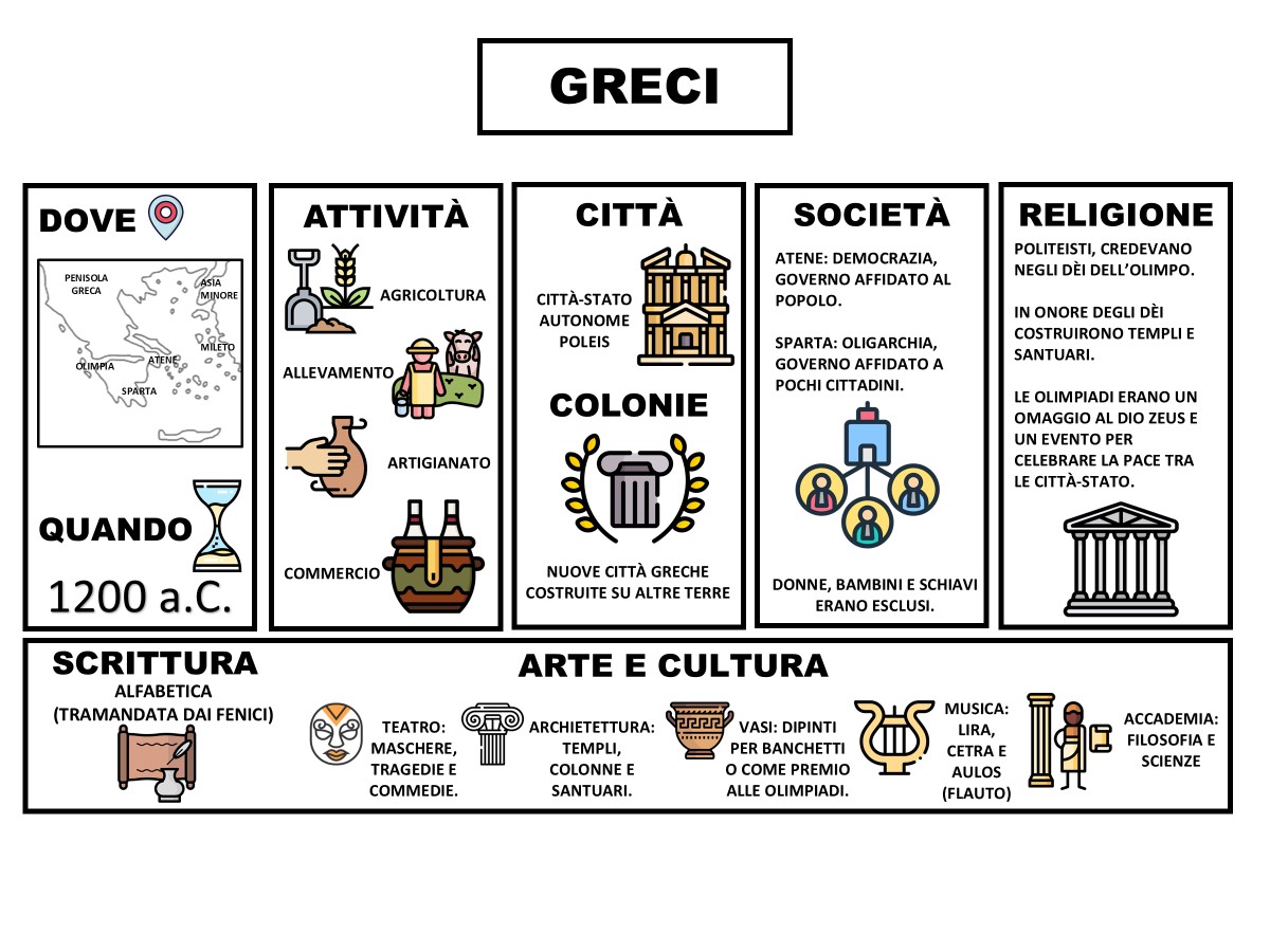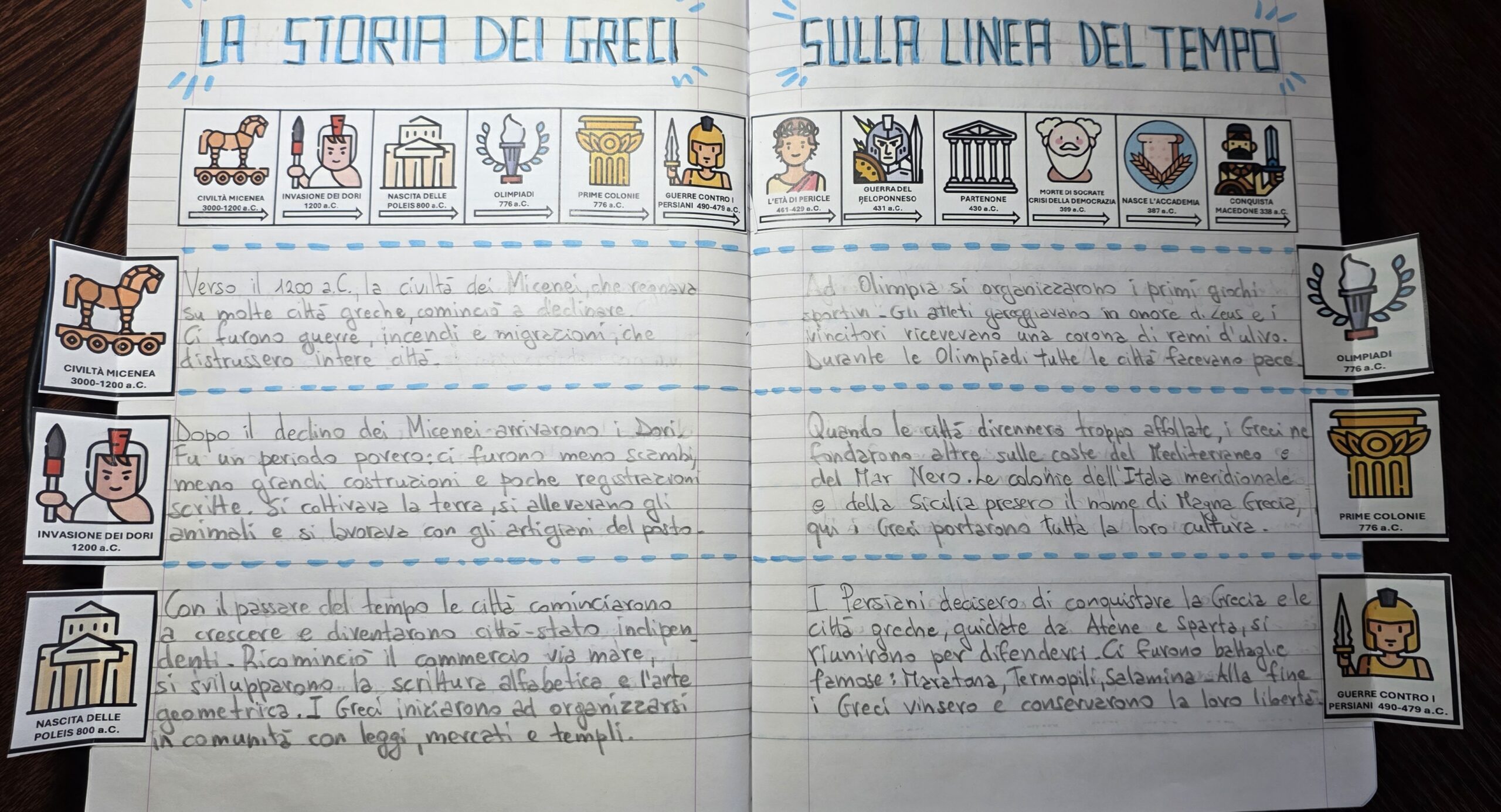 Il modulo «Alla scoperta della civiltà dei Greci», accompagna gli alunni alla scoperta di una delle culture più importanti del mondo antico. Attraverso mappe, leggende, poesia, arte, miti e attività creative, i bambini imparano a conoscere il territorio, la vita quotidiana, la religione, i poemi, il teatro e la nascita della democrazia. Il kit comprende tutta la progettazione interdisciplinare, i percorsi da sviluppare e gli elementi stampabili per le attività.