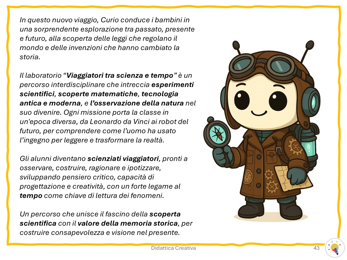 Il laboratorio STEM “Viaggiatori tra scienza e tempo” è un percorso didattico che accompagna gli alunni della classe quarta in un viaggio attraverso le epoche per osservare, sperimentare, misurare e comprendere i fenomeni del mondo naturale e artificiale. Ogni attività è pensata per intrecciare scienza, tecnologia, matematica e logica con riferimenti temporali: le invenzioni del passato, le osservazioni del presente, le visioni per il futuro.