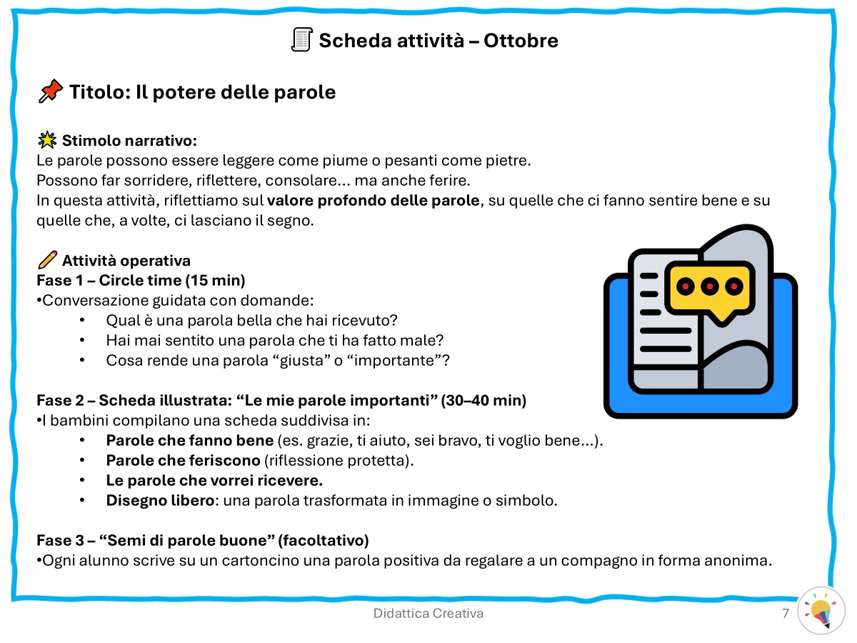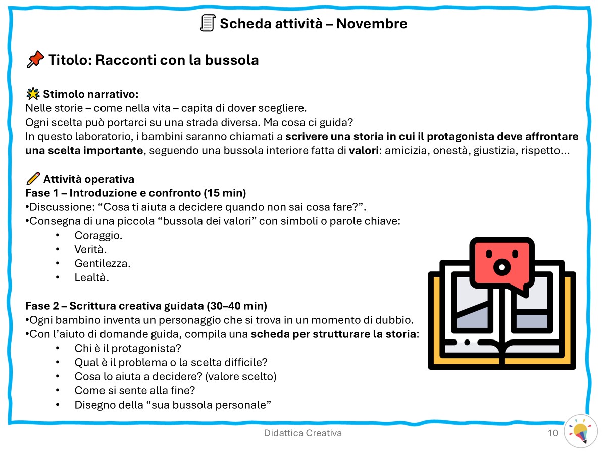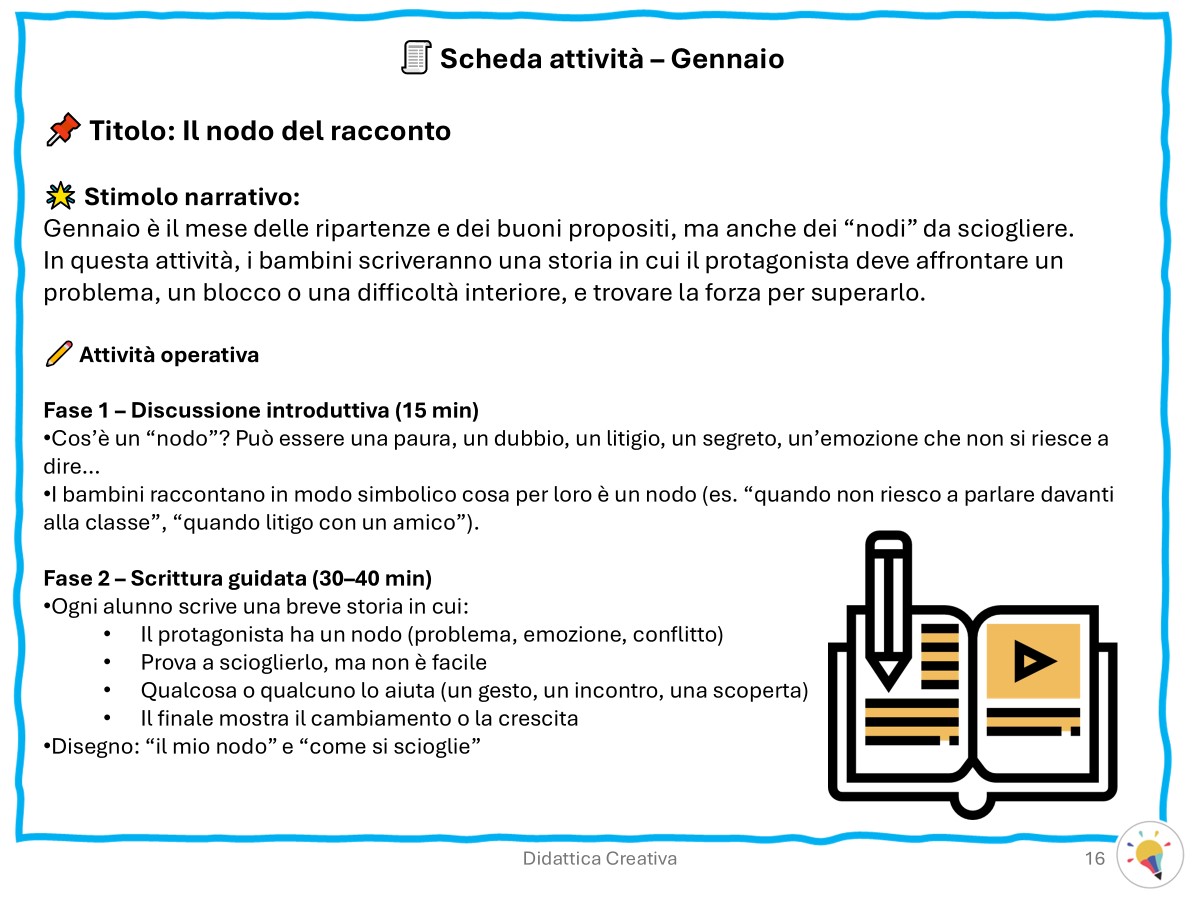 Con pochi materiali ma con tanta cura, è possibile dare vita a un laboratorio che nutre la mente e il cuore, lasciando un’impronta duratura nel percorso scolastico. Questa mini guida contiene la progettazione, le fasi di lavoro, le attività (anche con dispositivi digitali) e tutto il materiale stampabile utile per le proposte.