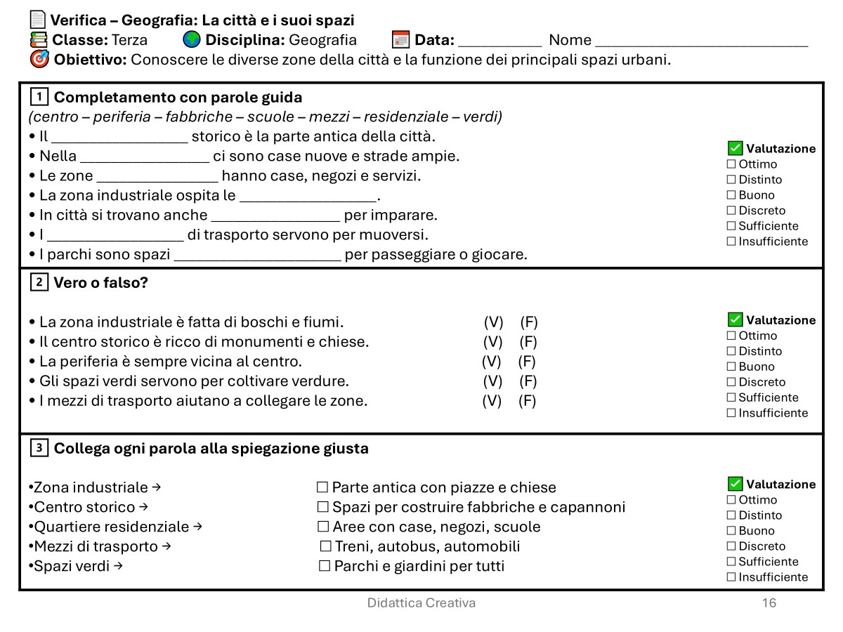 Le verifiche componibili (78 pagine) sono progettate per adattarsi ai diversi livelli di apprendimento degli alunni. Ogni verifica è articolata in tre versioni, che permettono al docente di personalizzare la somministrazione in base ai bisogni educativi degli studenti, garantendo equità e accessibilità.