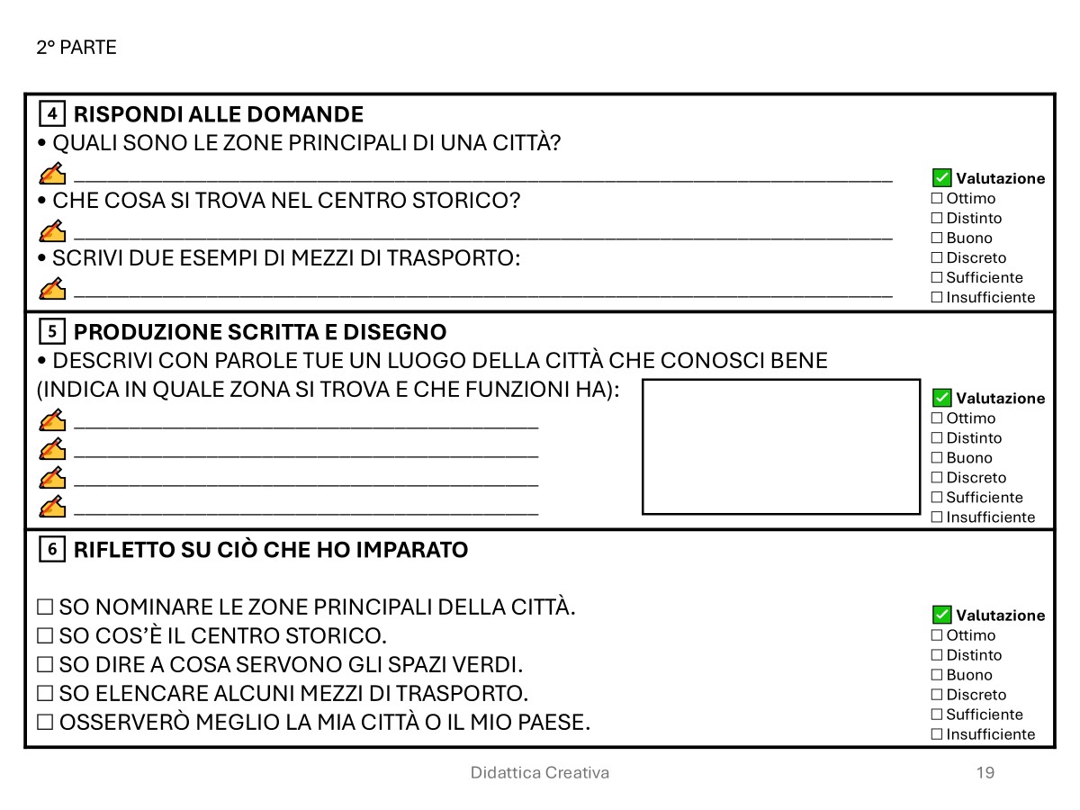 Alla fine di ogni verifica è presente una sezione metacognitiva in cui l’alunno riflette sul proprio percorso, risponde a semplici domande sul grado di comprensione, sull’impegno percepito e sulle strategie utilizzate. Uno strumento utile per promuovere autoconsapevolezza e responsabilità nel processo di apprendimento.